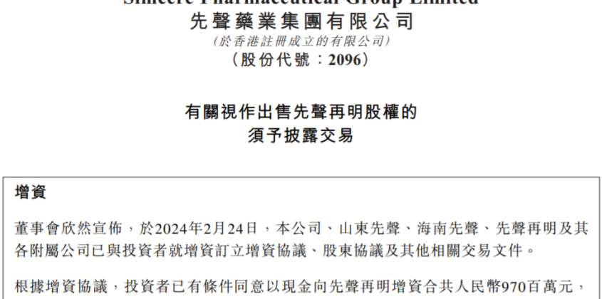 投资界(ID:pedaily2012)消息,2月24日,先声药业发布公告,其子公司先声再明将完成9.7亿元融资。此次融资投前估值75亿元,...