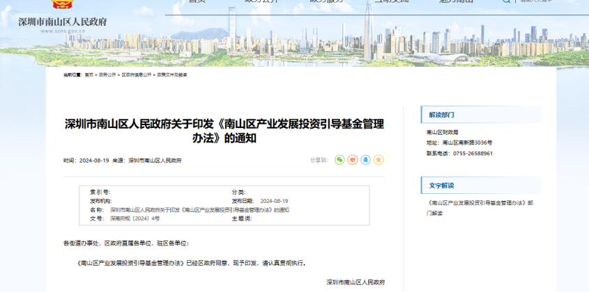 投资界(ID:pedaily2012)8月20日消息,近日,《南山区产业发展投资引导基金管理办法》发布,《管理办法》共三十条,包括总...