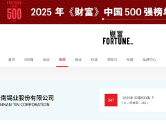 7月22日,2025年《财富》中国500强排行榜发布,锡业股份(000960)位居第347位,较去年排名上升18位。该榜单采用与《财富》世...