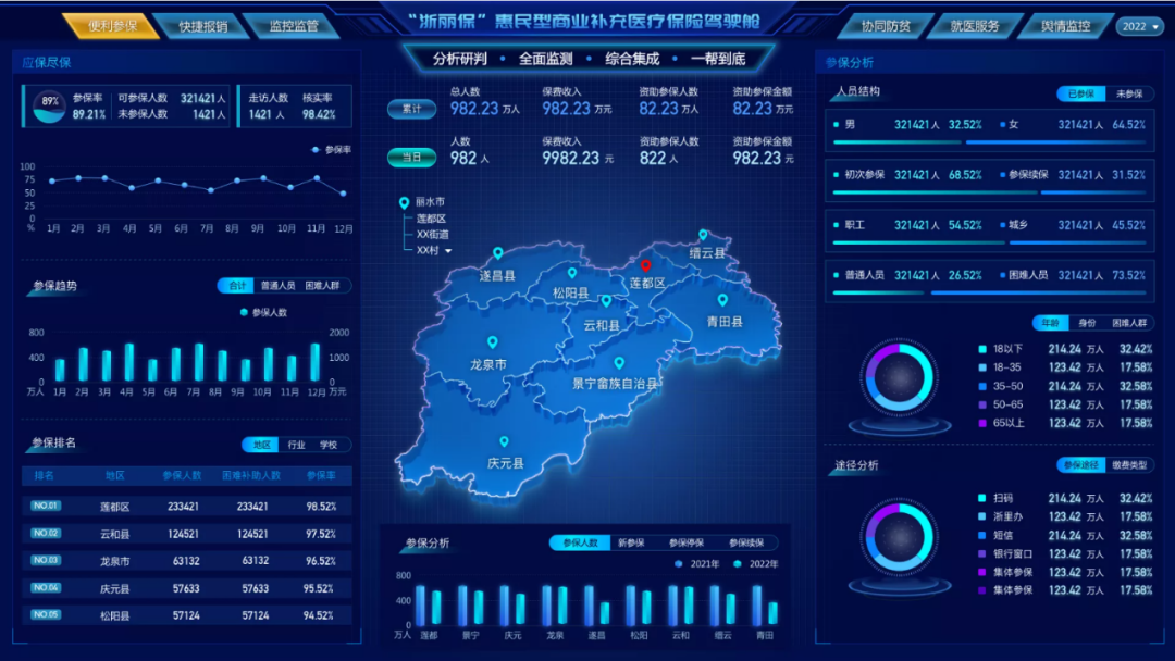 网新软件承建的“浙里惠民保”项目,借助大数据、算法引擎等数字化技术,对参保、报销、监控监管、协同防贫就医服务、舆情监控等业务进行重塑,推动业务流程再造。通过聚焦群众、企业、政府高频需求,创建“1+2+6”数字化架构,即1个驾驶舱,浙政钉和浙里办两端应用,以及便利参保等6个场景应用,建立多跨协同联动机制,协同机关单位、银行保险、定点医药机构等上千余家行政机关、企事业单位归集538项数据,形成551项指标体系,通过流程重塑、数据贯通,全面提升服务效能和治理效率。