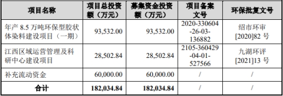 博澳股份原拟在上交所主板发行股数不超过133,333,300股,占本次发行后公司总股本的比例不低于10%且不高于发行后总股本的25%。公司拟募集资金182,034.84万元,分别用于年产8.5万吨环保型胶状体染料建设项目(一期)、江西区域运营管理及科研中心建设项目、补充流动资金。