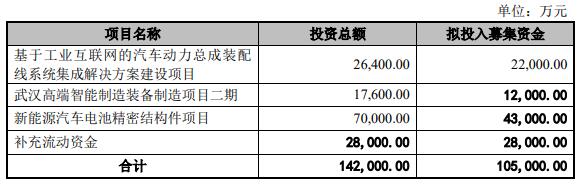 2022年8月30日,先惠技术发布2022年度向特定对象发行A股股票预案。先惠技术本次向特定对象发行A股股票拟募集资金总额不超过113,500万元(含113,500万元),扣除发行费用后,拟全部用于以下项目:基于工业互联网的汽车动力总成装配线系统集成解决方案建设项目、武汉高端智能制造装备制造项目二期、新能源汽车电池精密结构件项目、补充流动资金。