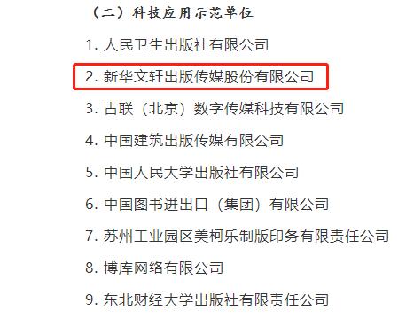 新华文轩荣获出版业科技与标准应用示范单位,既是国家新闻出版署对新华文轩长期以来坚持注重以科技助推产业发展的充分肯定,更有利于新华文轩未来以科技赋能出版传媒产业高质量发展,和新华文轩科技与标准综合重点实验室高水平建设。