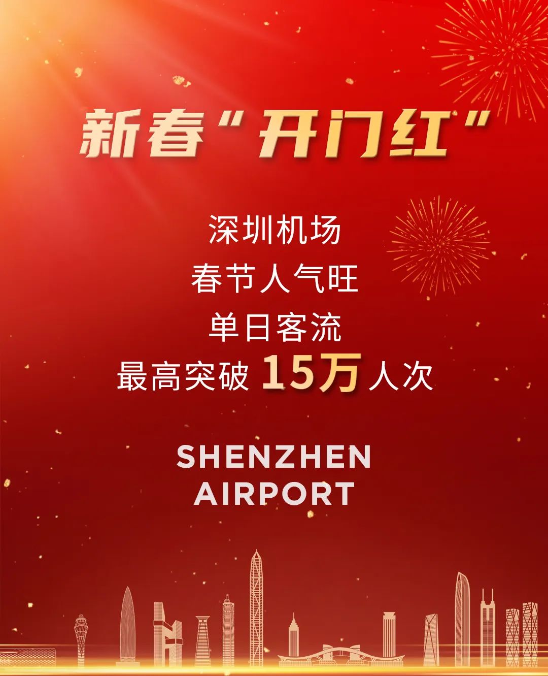 今年春运也是疫情防控政策调整后的首个春运,公众出行意愿和市场信心快速恢复。民航局统计数据显示,2023年春节假期民航运送旅客量比2022年春节同期增长79.8%。兔年春节,深圳上榜中国内地旅游热门目的地城市前十名。深圳良好的航空、旅游市场吸引各大航空公司春运期间加大在深圳的运力投入,带动深圳机场客运业务快速恢复。