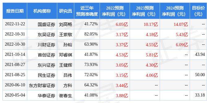 以下是详细的盈利预测信息: