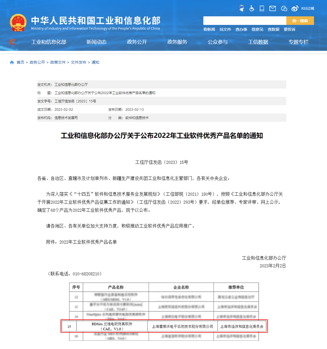 经过层层严格筛选评审,工信部于日前公布了2022年工业软件优秀产品名单,霍莱沃“RDSim三维电磁仿真软件”成功入选(排名无先后)。