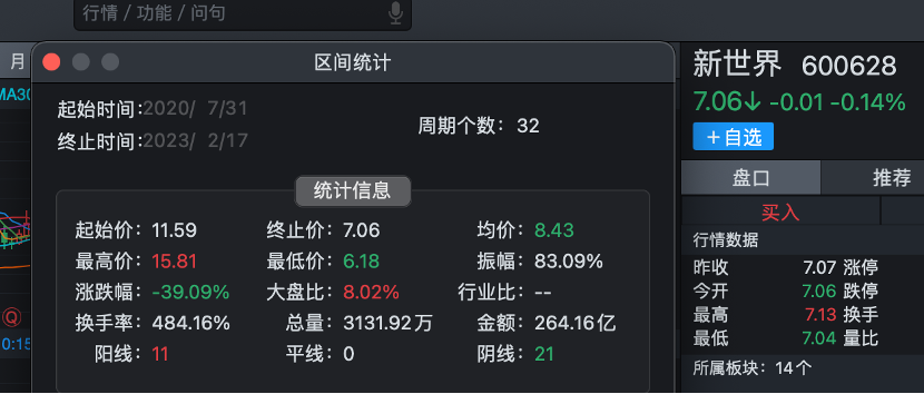 拉长时间线来看,12.37元/股的转让价已经逼近新世界2020年7月13日创下的阶段高点,且较最新收盘价的溢价幅度达到75%。