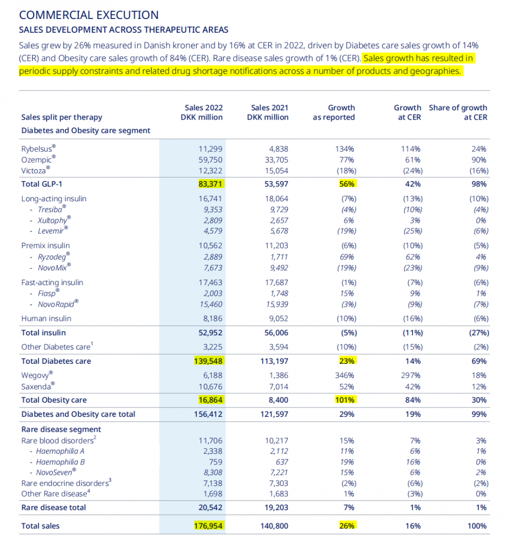 而诺和诺德的司美格鲁肽减肥适应症产品Wegovy更是实现了三倍增长,财报显示其2022年销售额为61.88亿丹麦克朗,同比增长346%。诺和诺德还表示,快速的销售增长导致相关药品短缺,对许多产品和地区进行定期供应。