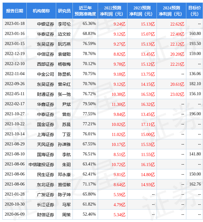 以下是详细的盈利预测信息: