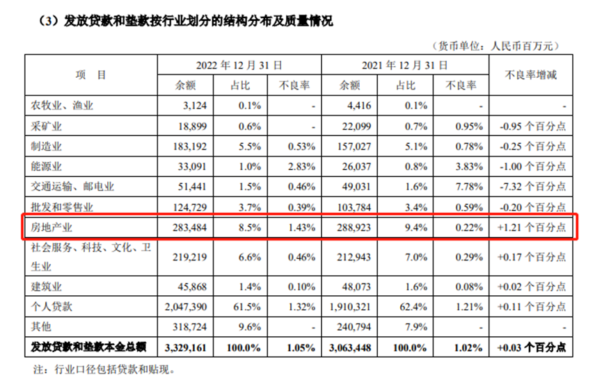 “虽然房地产不良率有所上升,但不良生成率有所下降,这可能是更关键的一个指标。”他指出,2022年该行的房地产不良生成率比2021年下降超过三成,总体控制良好,“目前来讲房地产这一块还是非常安全的。”