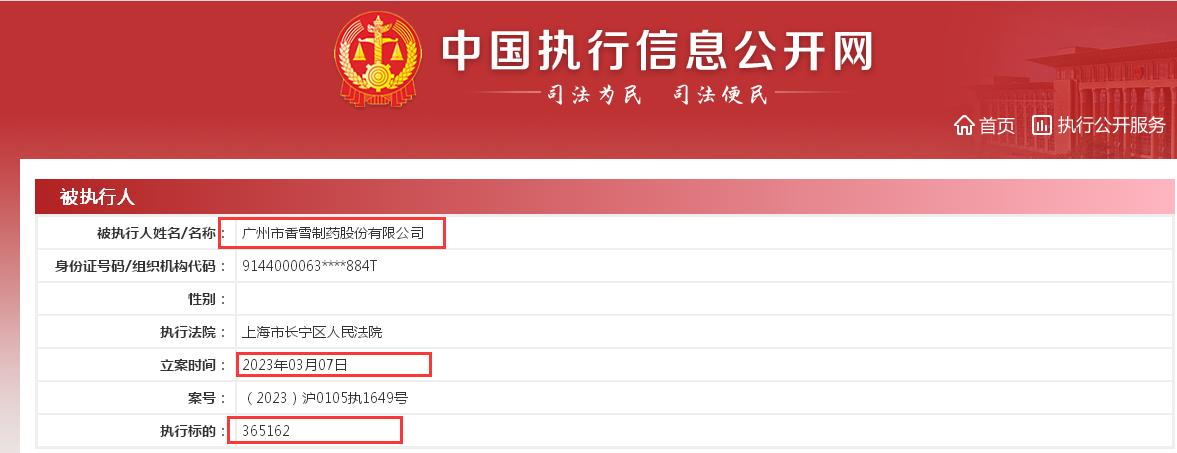 企查查显示,上述被执行信息,所属司法案件涉及《驰众广告有限公司与广州市香雪制药股份有限公司广告合同纠纷的案件》。