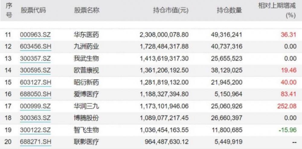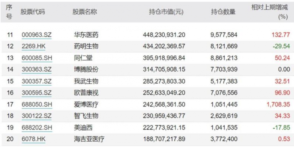 此外,昭衍新药、华东医药、欧普康视等也获20%-40%不等的加仓。