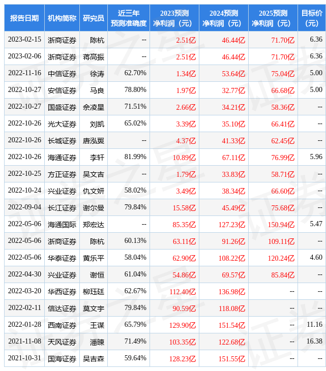 最新盈利预测明细如下: