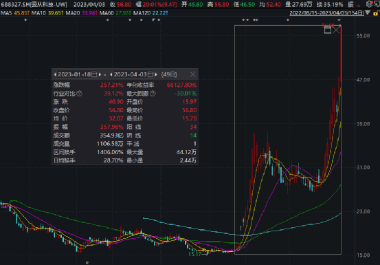 自1月18日开始,该股便开启上涨之势,截至目前,该股已经累计涨超257%。