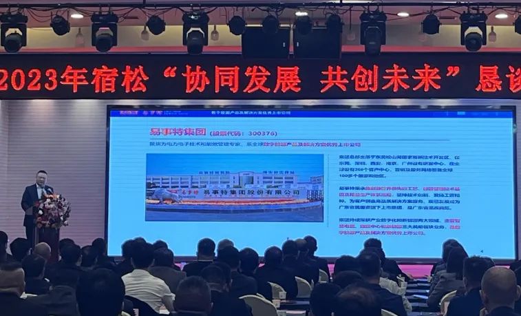 他表示,自己作为从宿松走出去的企业家、十大知名徽商之一,现有成绩的取得离不开家乡的养育和栽培,也始终关注家乡经济社会情况,并任东莞市安徽商会顾问、东莞市安徽安庆商会创会名誉会长等,致力以己之力带动更多力量反哺家乡发展。宿松资源富集、地理优越,“新能源+储能”产业发展空间广阔。接下来,易事特集团将继续立足“新能源+储能”,助力宿松新型储能及风电、光伏、充换电智慧出行等产业发展,为经济社会和生态文明高质量发展贡献更大力量。