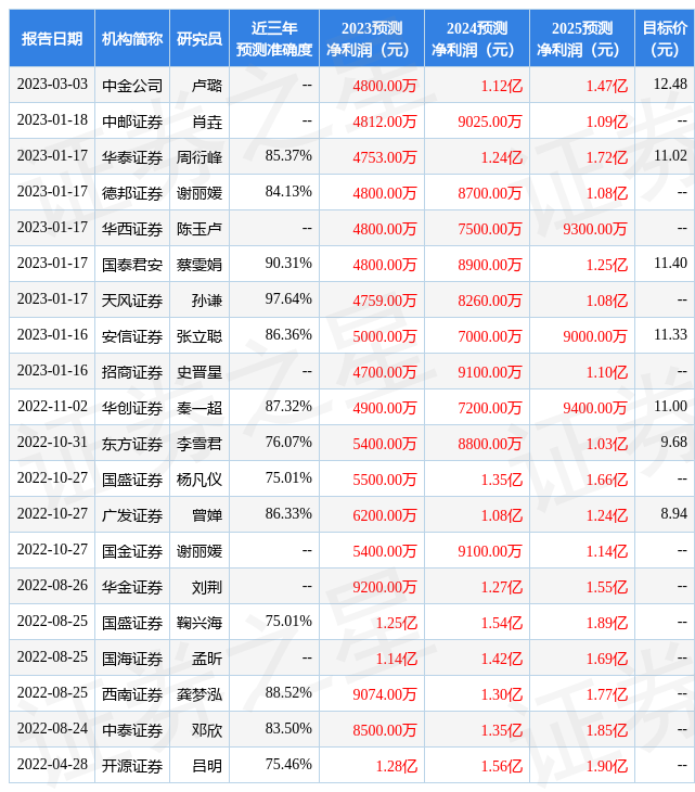 数据中心根据近三年发布的研报数据计算,天风证券(601162)孙谦研究员团队对该股研究较为深入,近三年预测准确度均值高达97.64%,其预测2023年度归属净利润为盈利4759万,根据现价换算的预测PE为67.2。