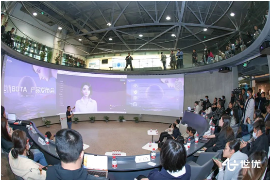 此次发布会上,世优(北京)科技有限公司(以下简称“世优科技”)正式发布了新一代AI数字人现象级产品——“世优BOTA”。来自现实世界的LiveVideoStack创始人包研与来自数字世界的世优虚拟主持人「阿央」通过新颖的互动开场方式,展示了元宇宙AI数字人的终极形态,开启AI数字人赋能进化之路。