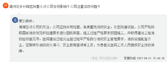 记者注意到,近日在公司投资者互动平台,除了业绩,有投资者还关心起爱尔眼科的消防安全问题,主要是因为北京长峰医院火灾产生“联想”。