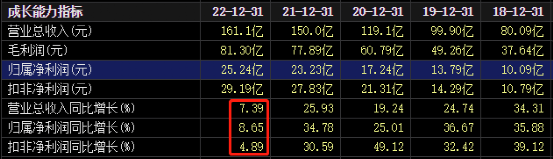 所幸的是,与2022年年报同时发布的还有2023年的一季报,看上去业绩增速有反弹的迹象,尽管只是单季度数据。一季度公司营业收入50.2亿元,同比增长20.44%,净利润7.81亿元,增长27.92%。