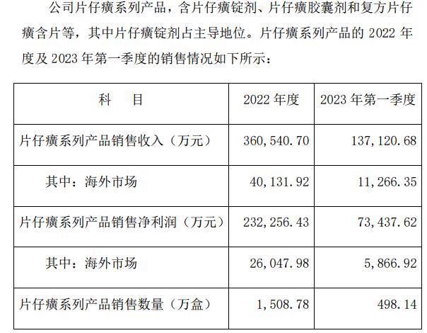 在本次的公告披露中,公司表示,片仔癀系列产品的2022年度及2023年第一季度的销售情况如下所示: