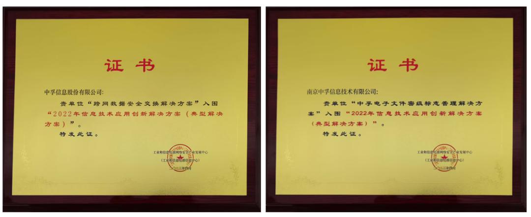本次研讨会以“数字赋能、融合创新,打造数字经济发展新引擎”为主题,聚焦我国自主数字技术体系构建以及重要行业关键领域深化应用。会上,重磅发布了2022数字技术融合创新应用解决方案征集工作成果。中孚信息(300659)申报的“跨网数据安全交换解决方案”以及中孚信息全资子公司南京中孚信息技术有限公司申报的“中孚电子文件密级标志管理解决方案”均成功入围“2022年信息技术应用创新解决方案(典型解决方案)”。