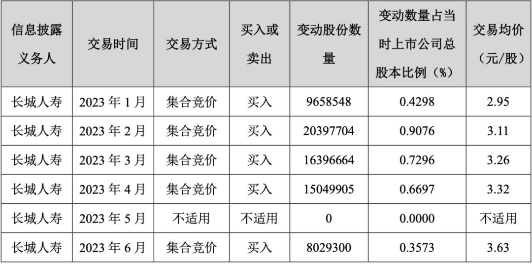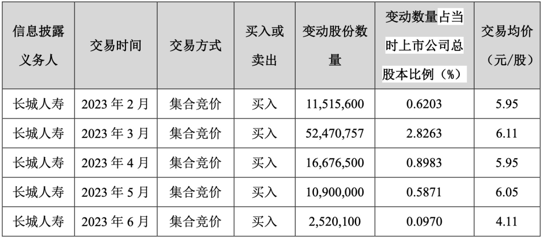 此次增持后,长城人寿共持有公司股份1.12亿股,占公司总股本的5.00001%。