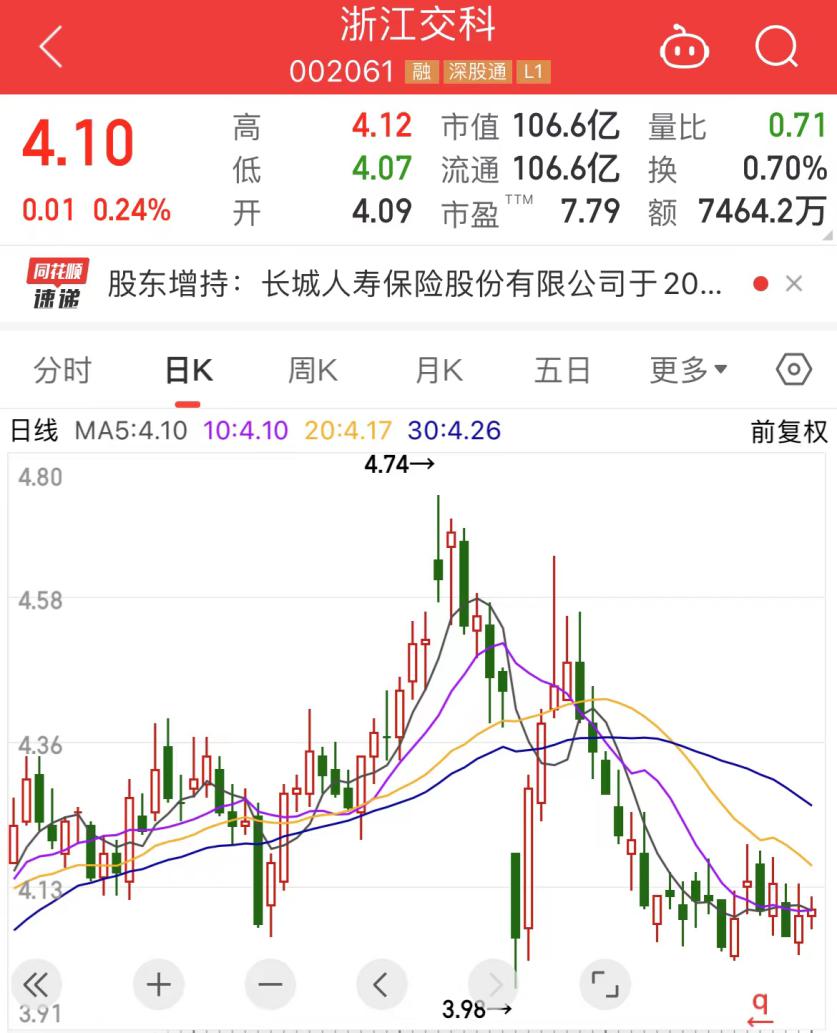 从交易均价来看,长城人寿购买的浙江交科股票目前处于浮亏状态。