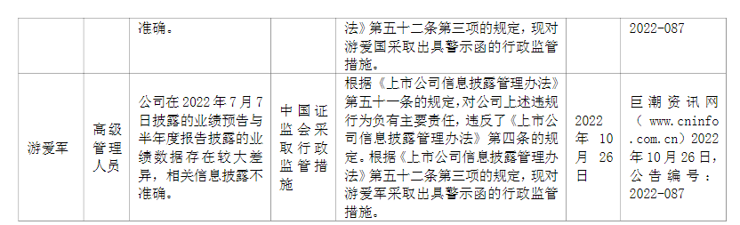 据悉,纳尔股份在2022年7月7日披露的业绩预告与半年度报告披露的业绩数据存在较大差异,相关信息披露不准确。而这一事件也受到了证监会的处罚并被要求整改,纳尔股份以及公司董事游爱国、高管游爱军均被采取出具警示函的行政监管措施。