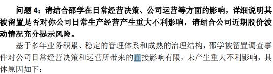 对此,公司解释称,综合考虑国家法律法规规定、公司运营实际状况、邵学履职实际情况等方面因素,为保障公司平稳运营,公司未对邵学被实施留置事项进行对外披露。