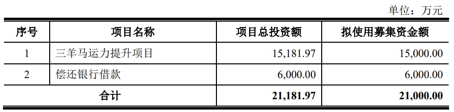 三羊马拟通过公开发行可转债的方式募集不超过2.1亿元用于三羊马运力提升项目及偿还银行借款。