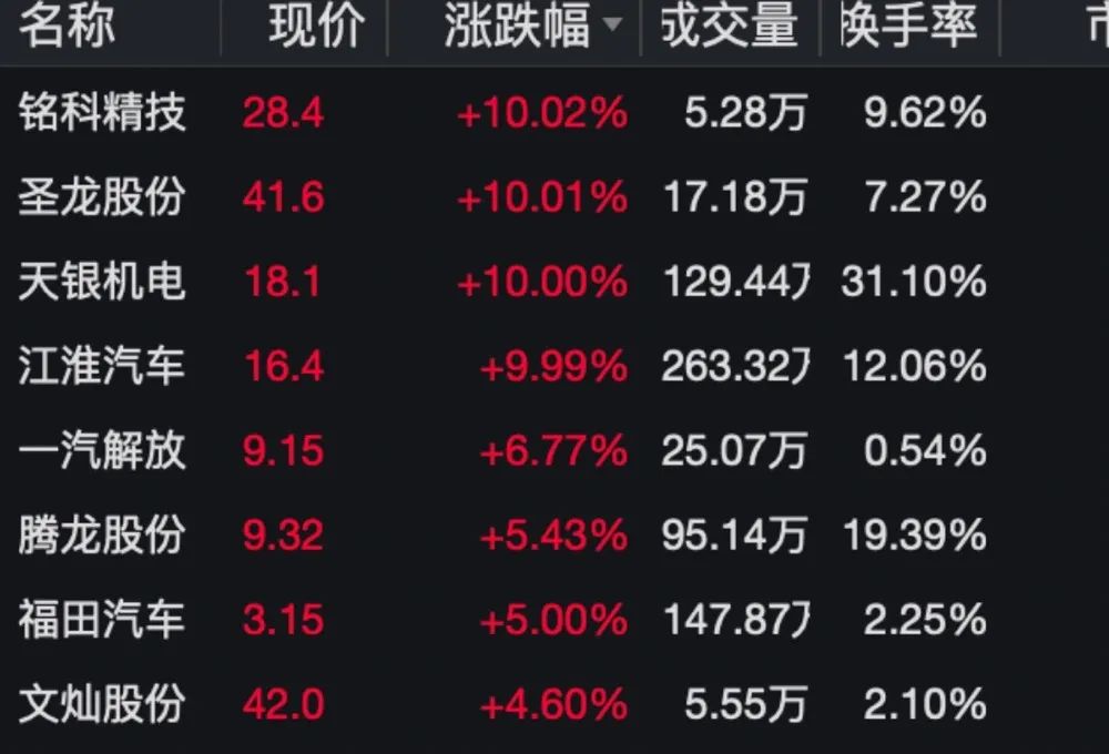 华为汽车概念走强,圣龙股份实现14连板,铭科精技(001319)、江淮汽车(600418)涨停。