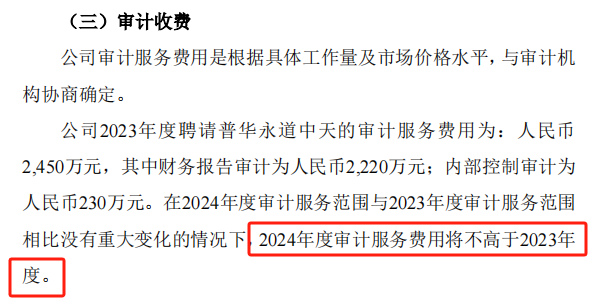 上海电气此前拟续聘普华永道提及,在审计服务范围没有重大变化情况下,2024年度审计服务费用将不高于2023年度。