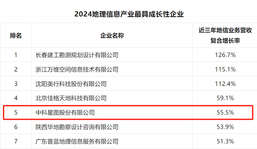 (中科星图近五年荣获地理信息产业百强企业、最具成长性企业榜单排名)