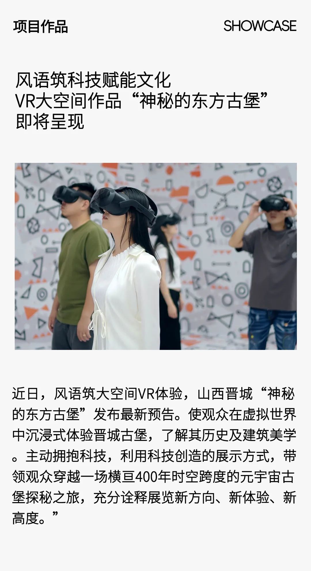 近日,风语筑(603466)大空间VR体验,探秘山西晋城“神秘的东方古堡” 发布最新预告。