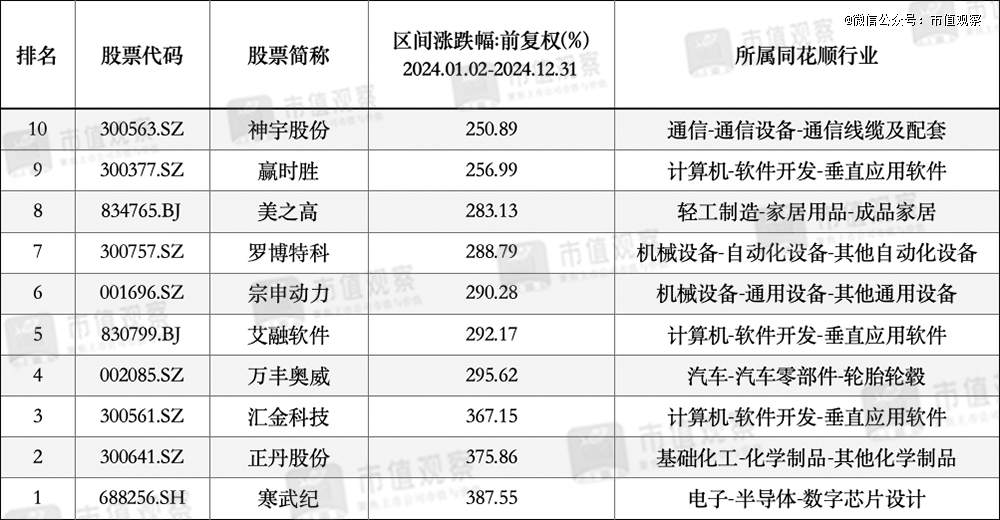 ▲2024年十大牛股(前复权)