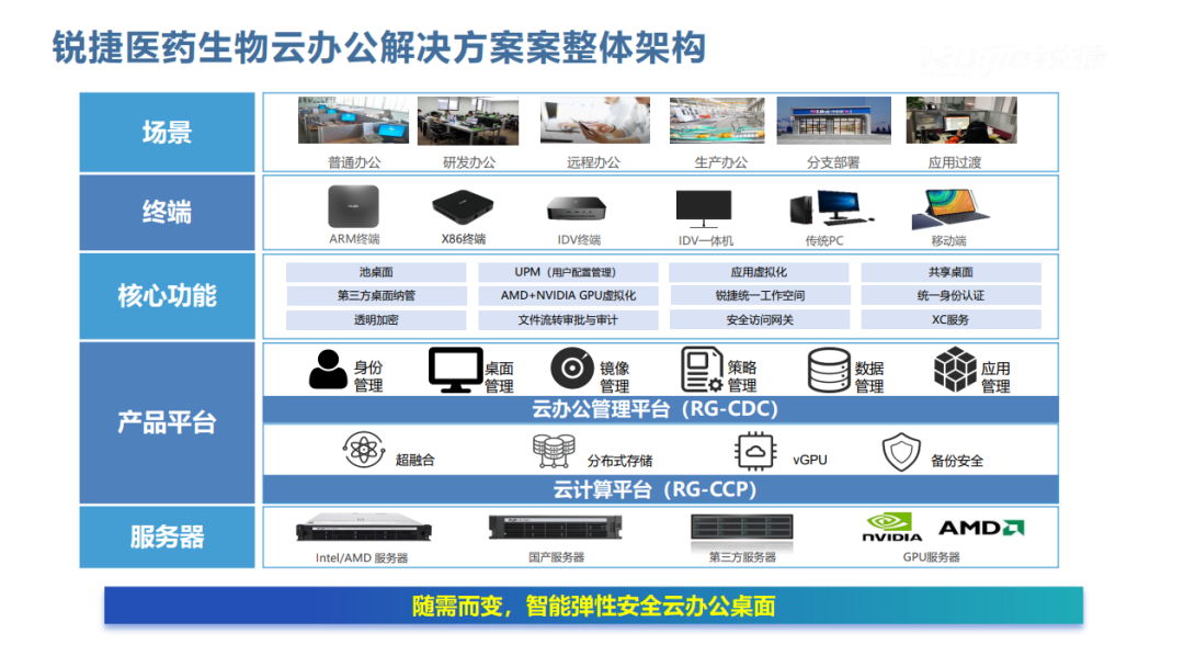 医药企业办公信息敏感,锐捷网络云桌面通过终端准入、外设管理、明暗水印、透明加密等措施保障数据安全。某医药研发企业采用后,未发生因办公终端导致的数据泄露事件,筑牢安全防线。