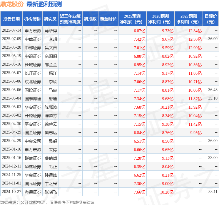 最新盈利预测明细如下: