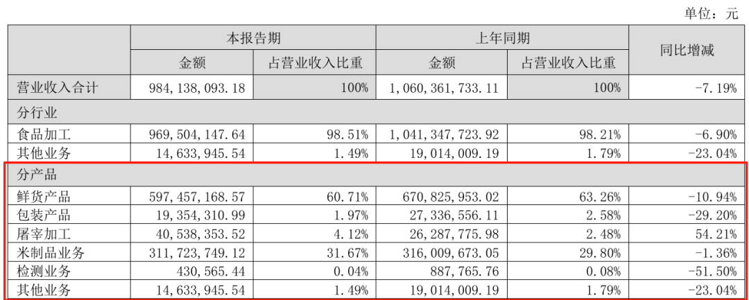 具体来看,煌上煌的主要产品营收近乎全线下滑,鲜货产品、包装产品、米制品业务分别同比减少10.94%、29.20%、1.36%,仅屠宰加工产品营收上升54.21%。